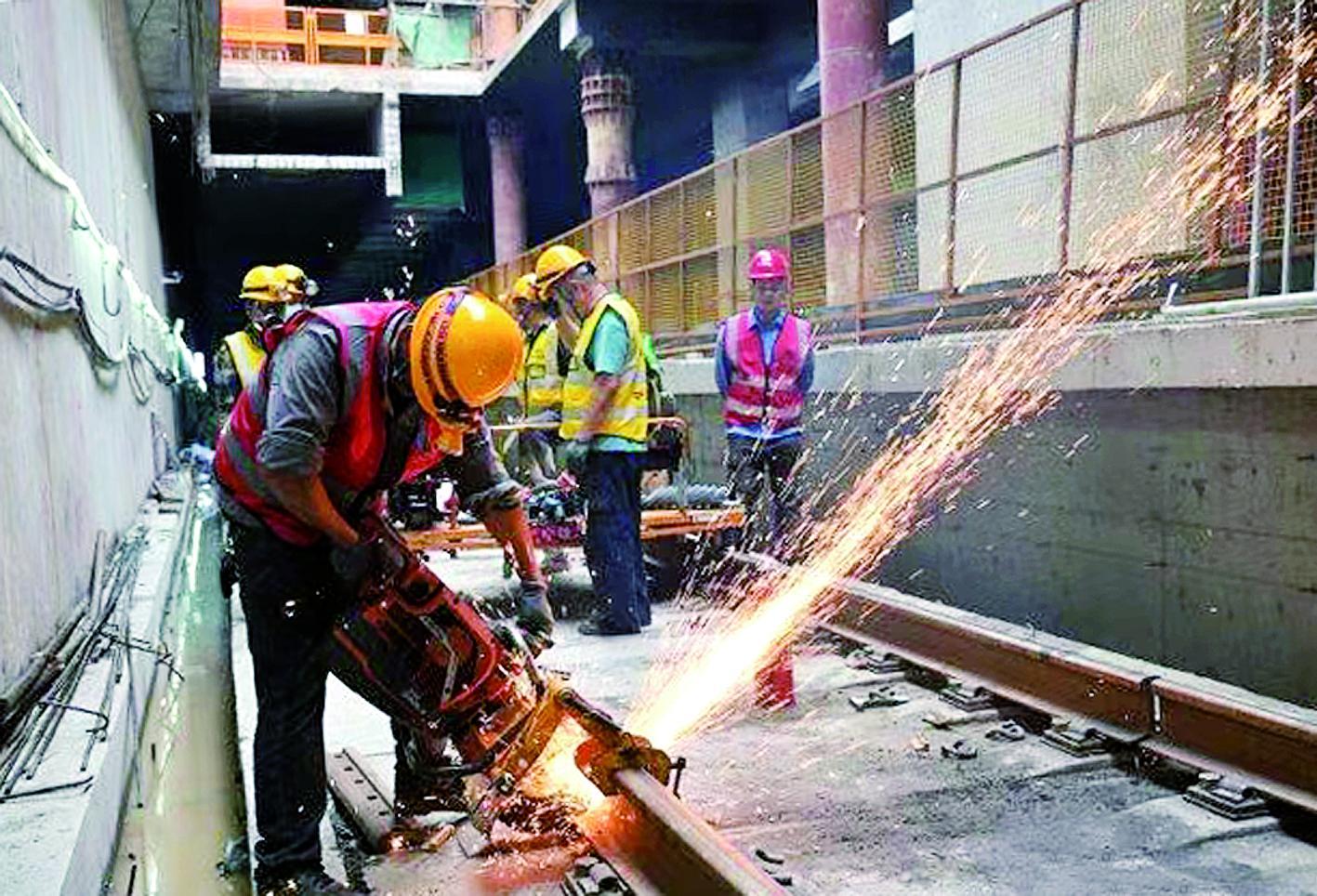 日前,轨道交通24号线一期迎龙站至商贸城北站区间施工现场,伴随着焊机规律的震动声,现场火花四溅,作业人员操作移动式闪光对焊机完成了第一对钢轨头的无缝焊接,标志着轨道交通24号线一期工程正式进入长轨焊接阶段,距离通车又近了一步。