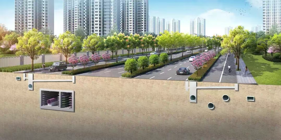 项目新建的地下综合管廊西起九堡大桥连接线,东至耕文路(与东段已建管廊衔接),全长约2134米,采用两舱式布局,分为地下综合舱和高压电力舱。